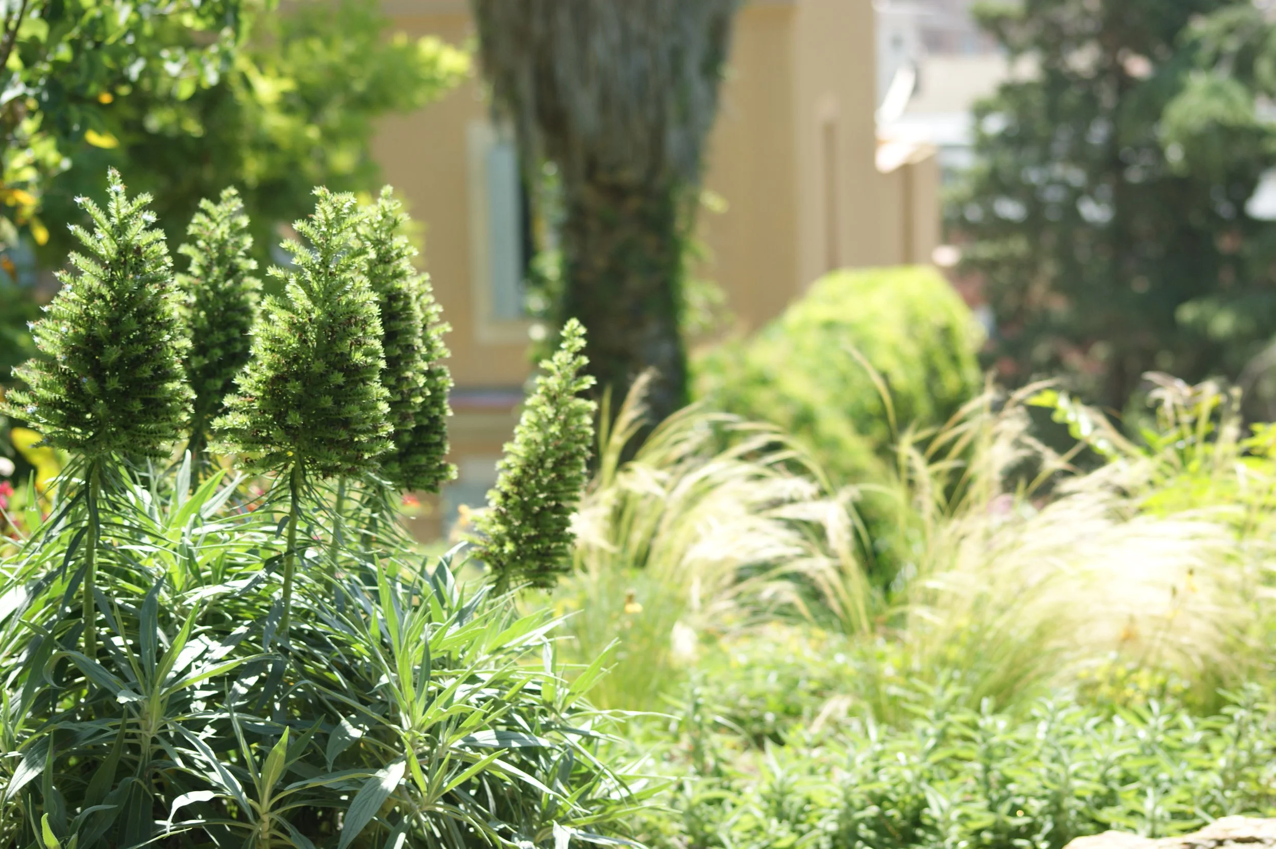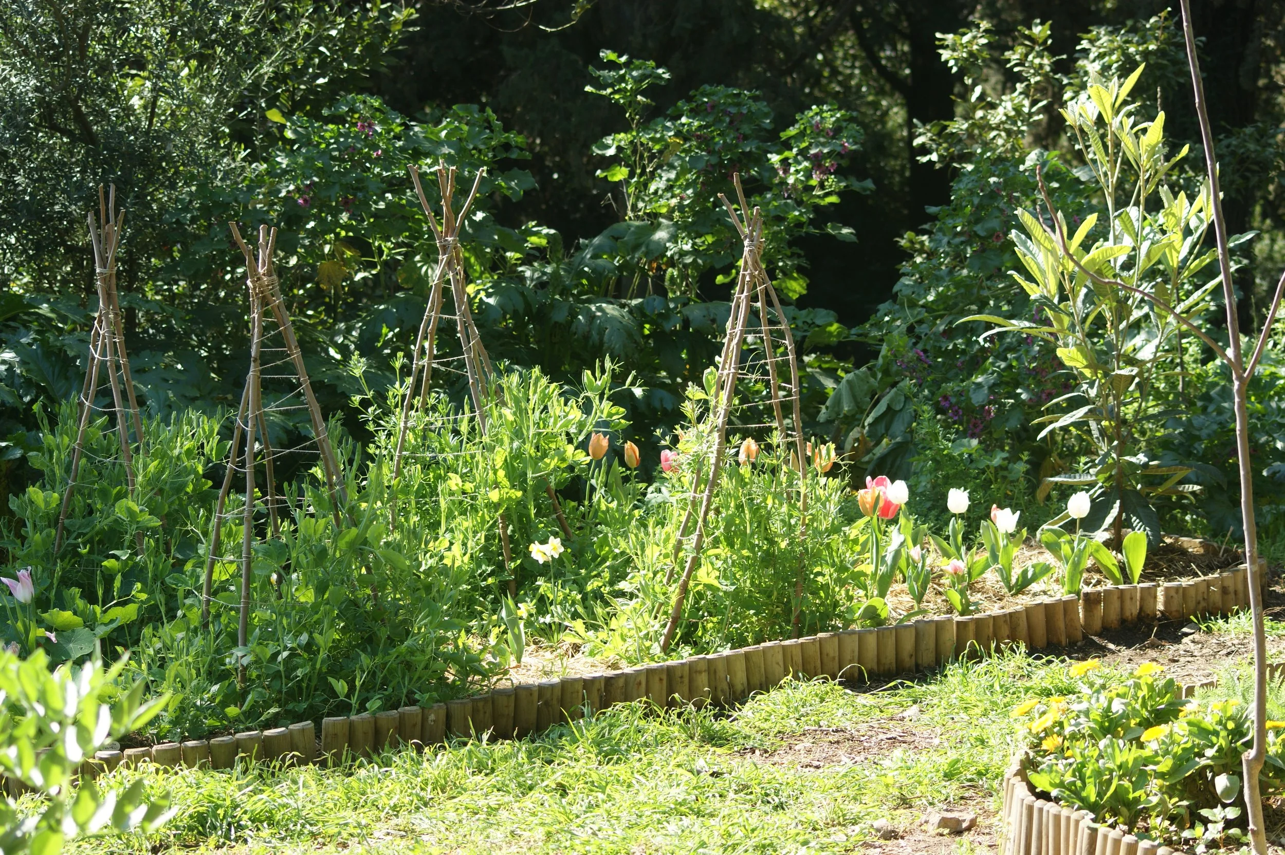 Un oasis regenerativo de más de una hectárea con parterres naturalistas, zonas de cultivo y floricultura, con mínima intervención y máxima biodiversidad.